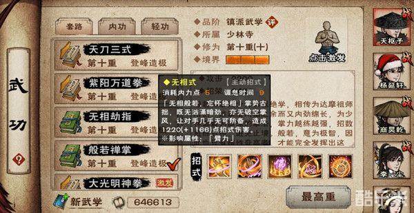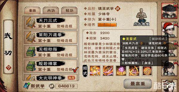无相式{无相般若,忘怀绝相}掌势古拙,既无汹涌暗劲,亦无破空掌风,让对手几乎无可防备,造成1220(+x)点招式伤害。(根据描述主动可能内置破招架具体概率不确定)