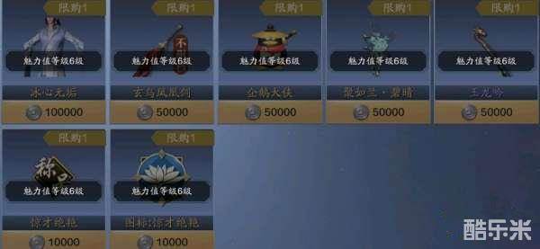惊才绝艳:魅力值等级6级开放兑换,限购1,10000铜币