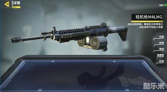 2、M4LMG是十分基础的一把轻机枪,虽然说在精准度、伤害等方面都表现尚可,但是样样通样样松,M4LMG在游戏中并没有什么特色。同时这把轻机枪的换弹速度非常慢,因此玩家们在新手期间可以使用这把轻机枪去熟悉卡点,同时训练自己判断是否进行换弹的时机。