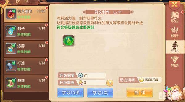 3. 玩家每提升1级能提升生活技能,从而制作出更高品质的生活物品