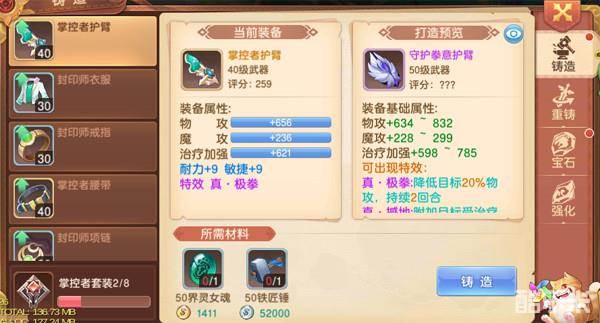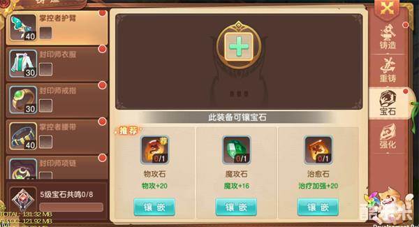 4. 玩家每升级10级后,在装备铸造提升后,可以镶嵌更多的宝石