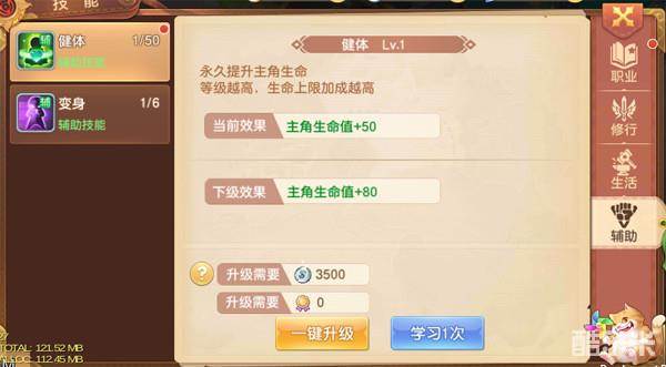 5. 玩家每升级10级后,辅助技能的健体等级会提升10级上限