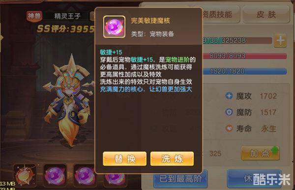 魔核洗炼需要宠物达到最高阶,再点击宠物魔核才能出现这个弹框噢