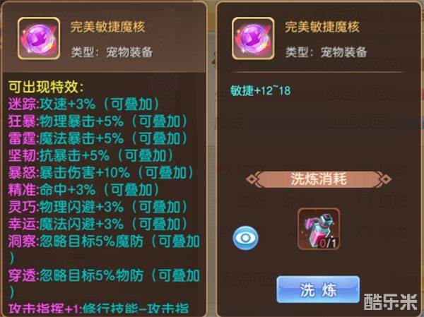 3、魔核洗炼能有机会洗出特效技能,让宠物更强