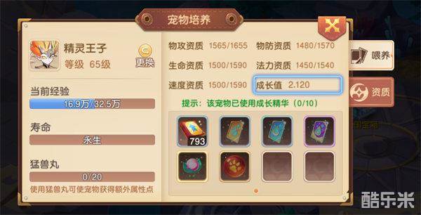宠物培养分为喂养和资质两个方面。喂养是可以提升宠物的极限上限值的,而资质是用来提升当前资质条的