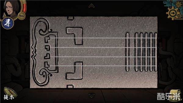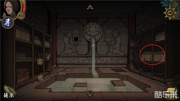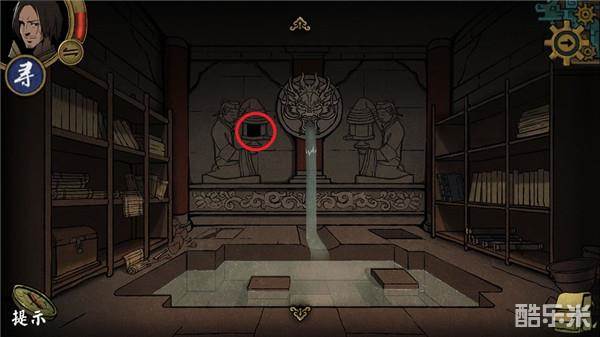 5、回到编钟房间,点击左侧抱琵琶女子,琵琶弹奏顺序参考龙吐水房间右侧书架上的提示