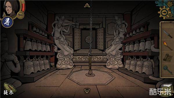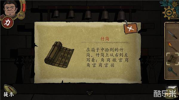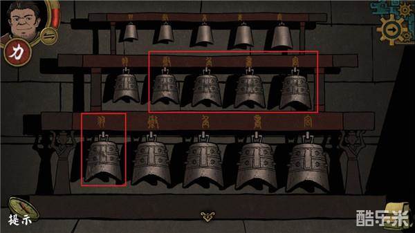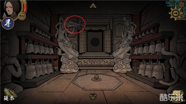 8、放入最后一个编钟,开始敲击。敲击按照之前得到的卷轴提示顺序,并且要注意只有这五个编钟有敲击过的痕迹,敲击才有效