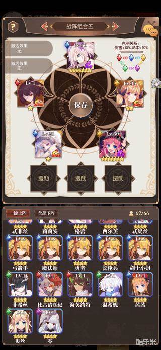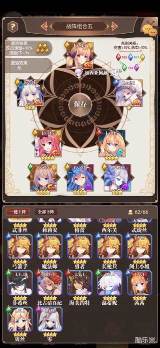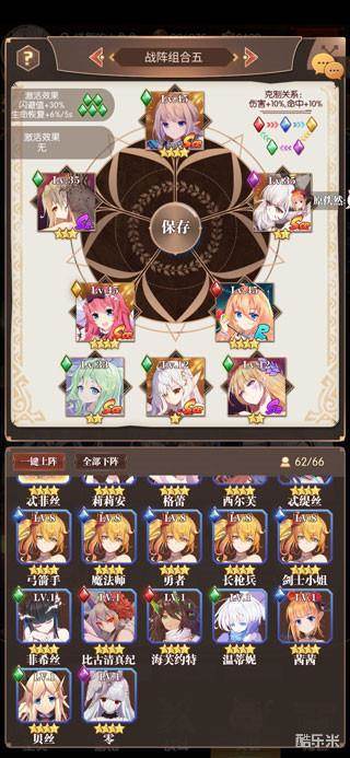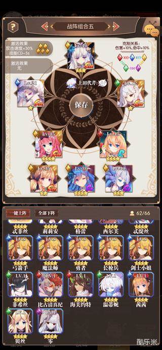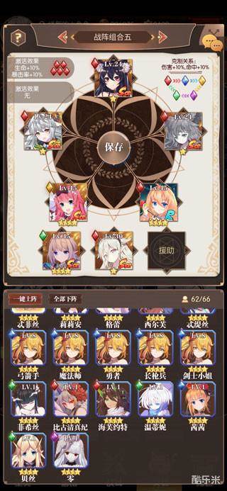 这套阵容的优势就是万能烧蓝,加上俄罗斯配合辛的群体真伤,有米娅的回蓝,比起旧通用队来说更适合PK,而且各种场合都比较通用,建议后备羁绊凑5神。