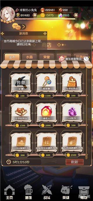 2、每天凌晨12点,早上八点,下午四点都会刷新一次商店,其中金币商店的矿镐你一个都不要落下,每天刷新金币商店的次数必须刷新完,也就是买5次。