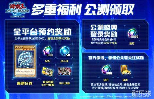 截止至2020年12月31日,《游戏王:决斗链接》全平台预约已突破500万,官方微博、微信公众号关注人数双双突破5万人!为了感谢各位决斗者的支持,神秘预约奖励“稀有梦想卡片兑换券”现已解锁!公测上线后,玩家不仅可以获得600个宝石、决斗珠、镜碎特效“青眼白龙”经典版卡片,还可以使用“稀有梦想卡片兑换券”兑换任意一张稀有卡,助力各位玩家顺利开启决斗者之路。
