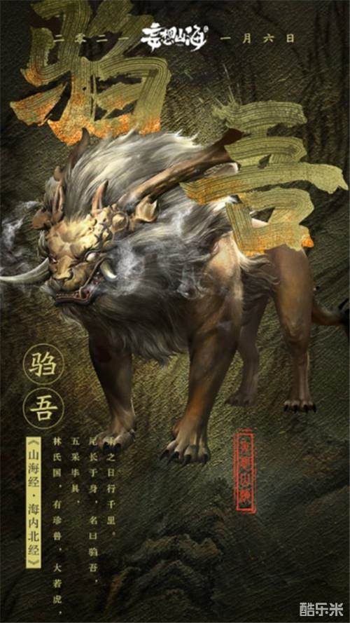 驺吾大小与老虎差不多,身上有五种颜色的斑纹,尾巴比身体还要长,据说骑上它能日行千里。虽然说它像老虎,但根据记载,驺吾可是上古仁兽,非自死之兽不食。嗯,虽然外形霸气凶猛,但是心地却意外的善良。