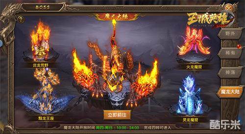 开服120天后第一个周三,所有完成四转的英雄都可以参与到寻找魔龙大陆的热门事件中。通过寻找特定NPC,完成魔龙大陆开门任务,获得进入其中的方法。在魔龙大陆,可获取大量装备和天龙币,均可在摆摊区进行摆摊销售,更有新的际遇与BOSS,以及全新装备出现,诸多精彩静待诸位英雄的探索。