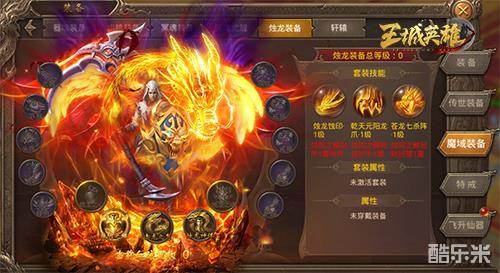 相传魔龙大陆本为一条上古烛龙陨落神位其龙身所化,四散的真灵融入大陆,千百年经过天地衍化,成为了可以带来强大力量的烛龙神装。在诸位英雄完成四转任务后,开服12天即可激活烛龙装备玩法。在该项玩法中,烛龙装备共有三套:主身烛阴之鳞和金身赤龙之息、烛龙神体。烛龙装备分为十个普通部位及两个特殊部位。