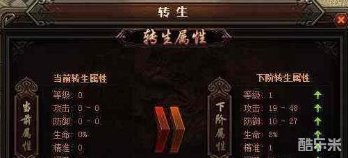 转生一共有12个等级,每个转生等级都对应着不同的转生装备,随着转生等级的提升,我们可以获得的属性加成也是越来越多,通过转生我们将可以大幅增强角色的战斗能力。