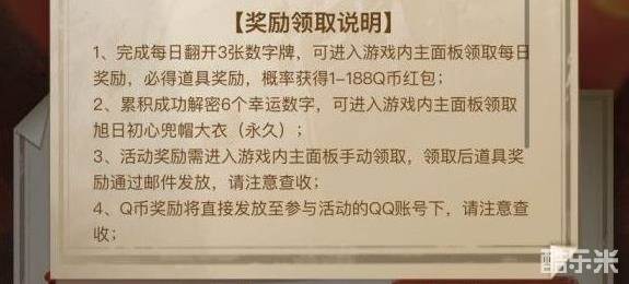 4.在活动页面完成每日翻开三张数字牌就可以在游戏里领取每日奖励,奖励必得道具,还有几率获得1-188Q币红包;