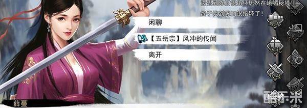 4、做完龙门纷争任务后需要前往五岳宗后山的位置寻找岳天傲,接取探索天阴教的任务,顺便好到霜珊珊接取寻找风冲的任务;