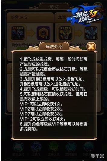 相信骑士们都遇到过只差一个龙魂就能进行飞龙升星的尴尬境遇。眼看着只差一点点却不能进行操控,真是令人心痒到如百爪挠心。龙窝的出现,将极大程度地减缓骑士们的飞龙养成压力,而同时,也将提供龙魂产出加速功能。急需龙魂的骑士只要轻点加速,消耗一定的钻石即可马上收获龙魂,第一时间进行飞龙的升星进化。