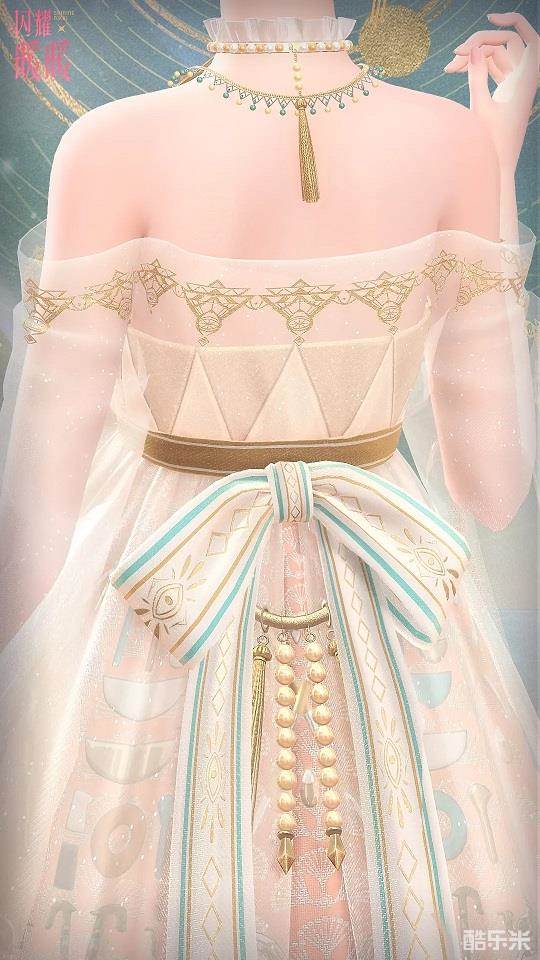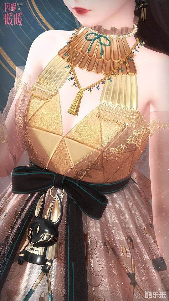 发梢金色的珠缀,用尺寸精巧的安努瓦造像打造成的耳饰,裙摆与鞋面的暗金花纹……仿佛能令人回忆起月夜山林间神秘的嚎声。