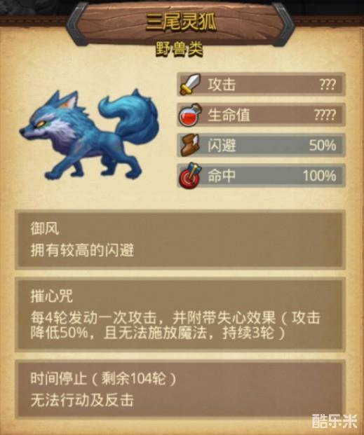 以上两只只要有永恒分本不是问题,在爬高的过程中最烦的就是这只狐狸。主要问题是50%的闪避率。如果一张图六只怪,青冥之后刚好六次机会,只要MISS一次又得重来。当然,解决办法是有,一个是提前祝福,一个是再来个青冥。但是很多时间都被它消耗了倒是真的,走剑圣可以减少一部分的MISS。