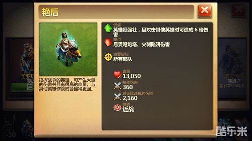 不同的英雄人物有不同的特点和属性,但无一例外都十分强力,拥有英雄加成的军队其在攻击和防守上更加出色。每个英雄都具备高血量,强攻击的特点,但是易受到弩炮塔、尖刺陷阱伤害。在进攻或者防守时,英雄之间展开对决,每个英雄对其他英雄都可造成6倍伤害。而且英雄还可通过铁匠铺进行升级。