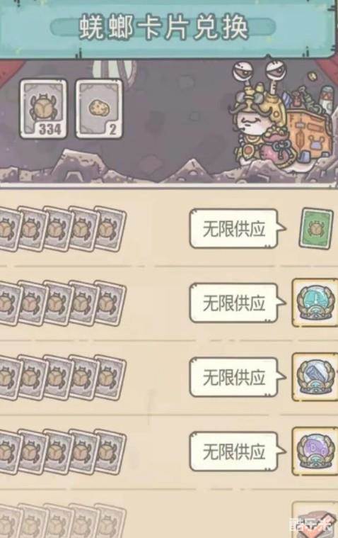 在区域1触发,可使用在挖地获得奖励、达成目标等各种地方获得的卡片来兑换物资。卡片共分为两类,一类是可大量获得的基础卡片,每5张低级卡片可升级成1张高级卡片,兑换完特殊兑换项后可兑换火箭中物种战争建筑的材料;另一种卡片获取主要是采集完毕和完成多人事件获得,可兑换各种奖励诸如抽奖券、许愿币等,但获取难度较大,没有什么好办法可解决。
