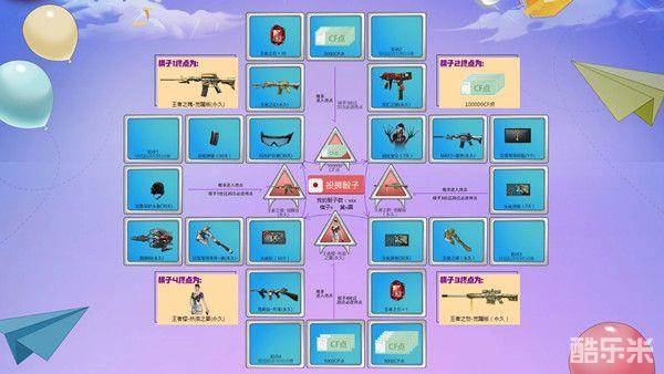 3、抽奖:投掷骰子所达到的区域即为本次可以领取奖励的区域,投掷骰子获得的可分解道具进入暂存箱,其余道具直接发往游戏内;获得的物品会在24小时内发往您的游戏仓库,王者樱-热浪之夏(永久)是唯一性道具,游戏内不能重复到账;每次移动的起点即为上次的终点,超过活动期限的骰子将作废;棋子每次经过各起点都将额外获得1000CF点,每次最多仅能获得一次;起点不计算点数,经过起点时,会自动跳过;