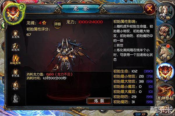 培养方式:消耗龙力值进行炼化,炼化期间每在线半小时即可获得一个加速炼化状态。