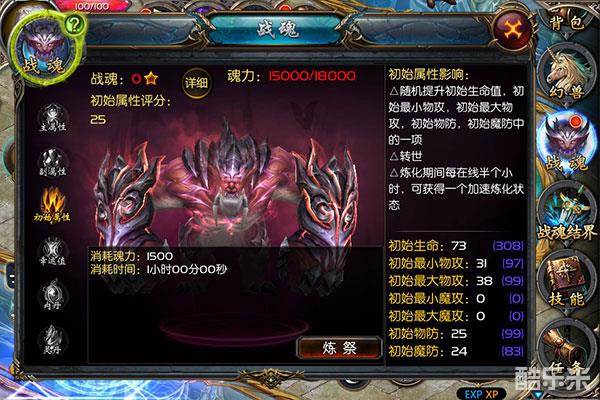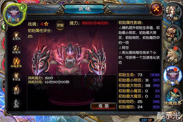 培养方式:消耗魂力值进行炼化,炼化期间每在线半小时即可获得一个加速炼化状态。