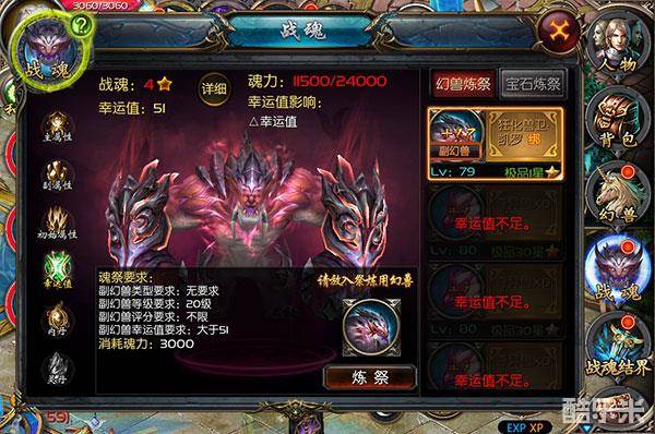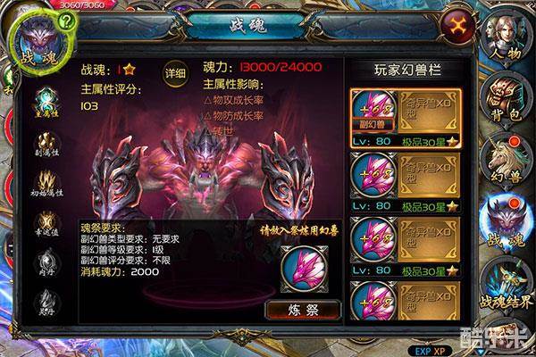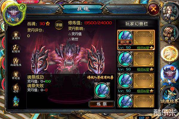 培养方式:①幻兽炼祭:将符合条件的幻兽放入炼祭框中;②宝石炼祭:战魂幸运值达到70以上即可使用幻魔晶石或幸运药水进行炼祭。(注:以上两种炼祭方式均需消耗魂力值)