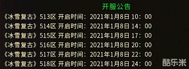 《冰雪复古》518区开启时间:2021年1月8日24:00