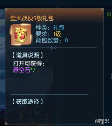 玩家需要通过参加登天的跨服组队副本,登天战役礼包从里面获得升华材料