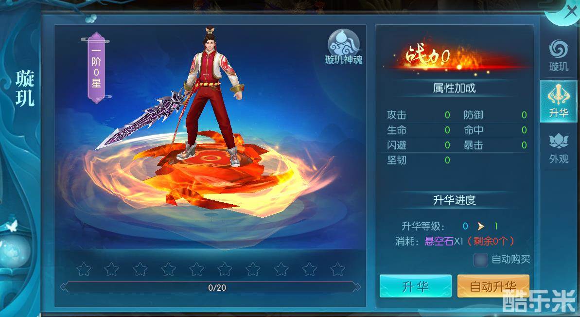 璇玑系统是醉美人里玩家提高战力的途径之一,玩家可以选择已经解锁璇玑外观用于飞行,根据登天战役的通过波数可解锁璇玑外观,参与登天战役可以获得璇玑的升华材料,所有的璇玑外观共享生活所获得的属性,通过运营活动可以获得特殊形象激活卡,用来激活特殊外观并获得属性加成。