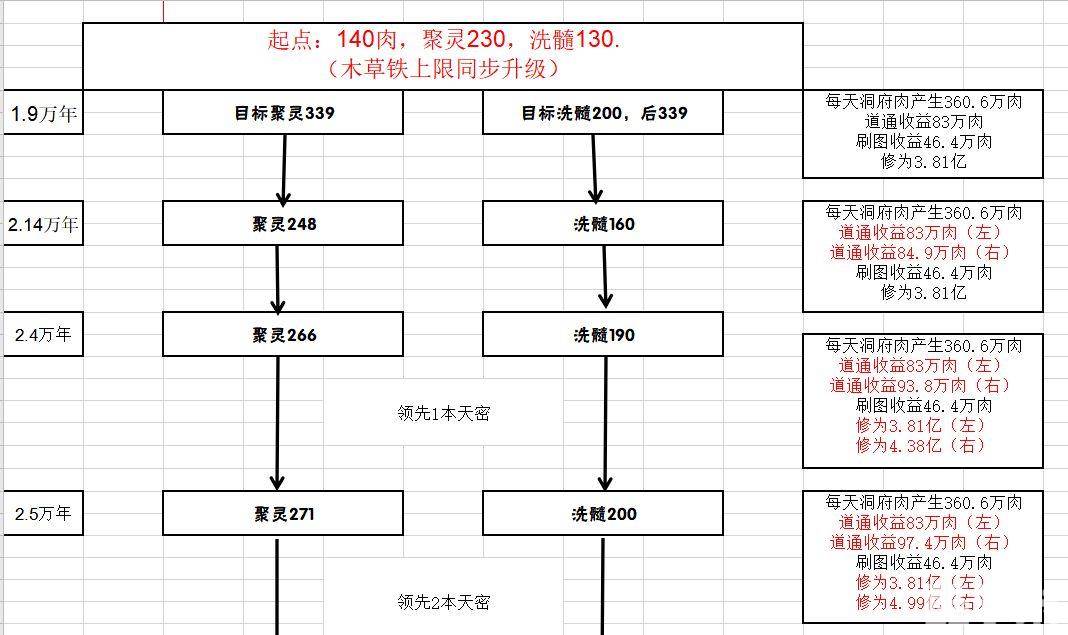 同时先200洗髓,可以提前20天升级201肉,而先339玩家晚20天。