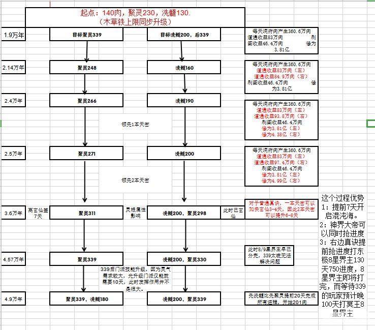 最后终结:通过真诀类推,万克,两万克,339收益较晚,无法优先开启神界大帝,混沌海等其他进度领先,新版本优先推荐洗髓200后聚灵339。