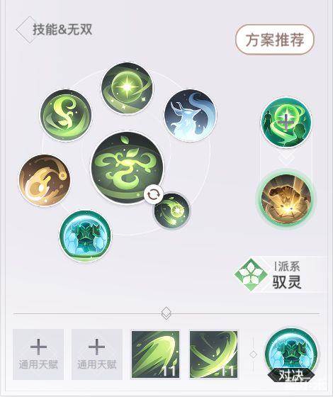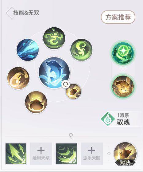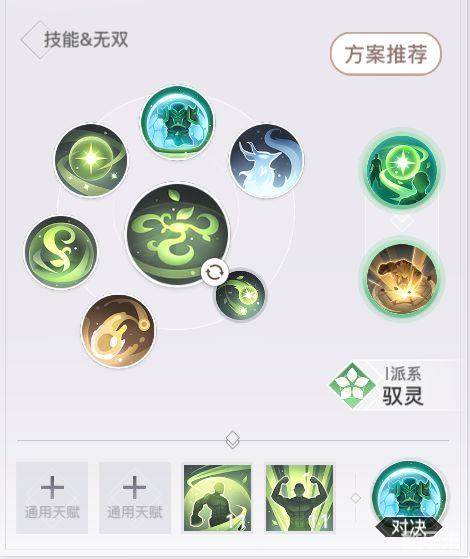分析:小队混战pvp需要注意保命,所以保命技能【灵化】很有必要,同时做到控制【戏鸟】【灵猿·啸空山】,【戏鸟】加上【飞萤】的【飞萤之痛】会高性价比,所以一般会带上【飞萤】,【灵甲】的群体盾和驱散效果在混战中有很高价值,在混战中【万灵共生】这种团体保命技能也是非常重要的。天赋选择驭灵,加强生存能力和治疗能力即可。