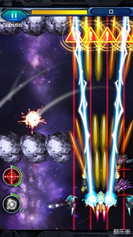 玩到第二章的时候会出现一个,只有陨石的关卡。不但密集度很高,下降速度也很快,不过只要逐一击破即可!