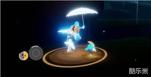 2、在右边的树桩底下找到冒着蓝光的雨伞先祖,点燃后跟着她走;