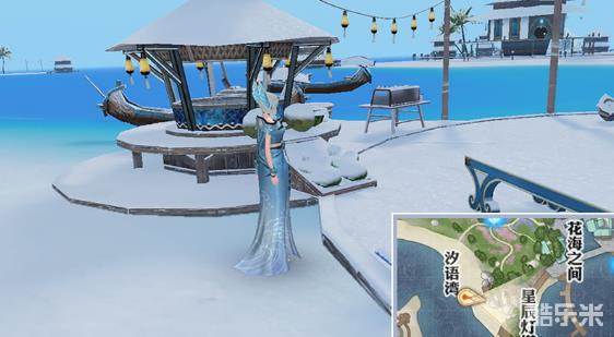5、完成之后接着去汐语湾寻找npc渲儿(406.259),然后在她身边点击音轨播放“极乐谣”就可以让她开心,可以获得藏品“爱心手帕”;