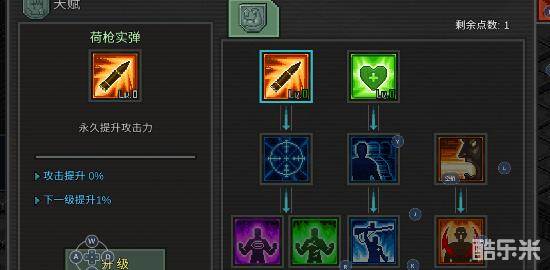 2、天赋系统:每次升级可以获得天赋点,用于升级天赋。建议大家的升级路线是荷枪实弹——精准——愤怒——狂野——内伤(眩晕都行),到这时候你们应该就自己能想明白该点什么了。