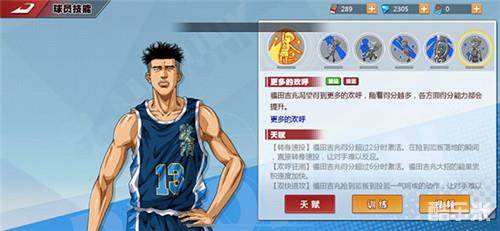 游戏首个也是唯一的得分进阶技能就是福田的“更多的欢呼”。这个技能的设计来源也是原作中一个非常具有记忆点的桥段。在陵南对战海南的经典战役中,福田表现相当优异,因而得到了观众席中如雷贯耳的掌声。在激动之余,这位陵南悍将流露出了“请再多给我一点喝彩”的内心独白。在游戏中,这个技能是被动技能,可以随着得分提升各项其他能力。