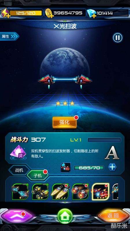 这个时候玩家可以选择提升子机来提升战队的总战力,相对于战机碎片,子机的手机速度快,战力提升速度也快,而且不同的子机在不同的战斗中更能发挥比战机本身更强的威力。下面就让我们看一下A级子机:「X光扫波」的属性吧。