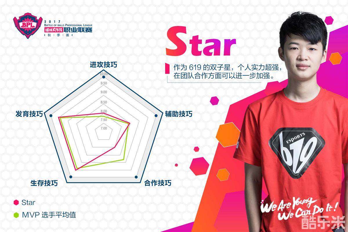 Star的人气不用多说了吧,随着年纪的增长,他已经从可爱的邻家小弟弟长成了清秀的少年。当然他最受姐姐粉们喜爱的还是超高的个人技巧,曾在2017年BPL春季赛上一人包揽MVP、吞噬王、炸刺王三项荣誉,实力一骑绝尘。