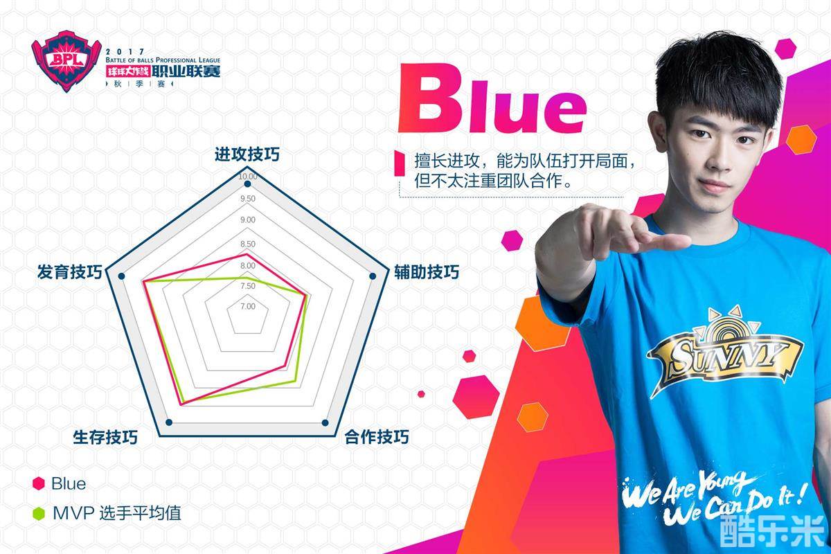 从LK转会至SY的Blue,在BPL春季赛中锋芒毕露,常凭借犀利的进攻为团队打开局面。加入SY之后继续发挥优势,在秋季赛首周帮助战队拿下积分榜头名。Blue是气质干净清爽的少年,颜值也是校草级别的呢~