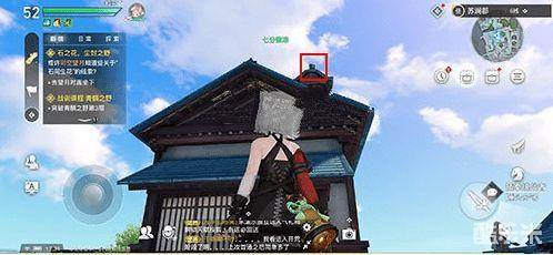 如果你没有做这个猜拳的任务,那么就可以来到这个猜拳冠军这里,然后通过给她拍照来顺利的完成任务。这个猜拳冠军的坐标为582.412,就是如图所示,在这个房顶上面就可以找到他。