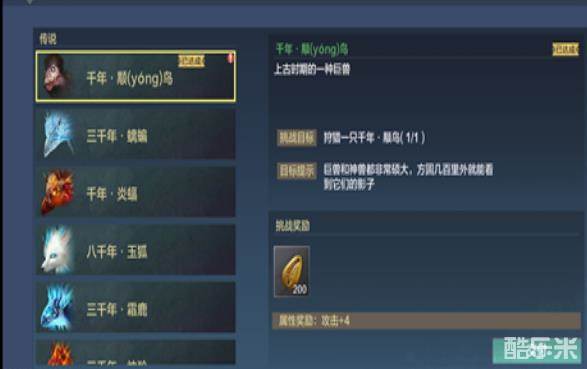 妄想山海游戏中除了世界上遍地分布的异兽之外,部分异兽会带有年份称号,比如百年、千年等等。这些异兽往往比较珍惜,并且战胜后就能够获得价值相当高的部位或者掉落品,不论是用来拍卖还是给自己的宠物吞噬都是极好的选择。很多玩家眼馋这些千年异兽,却不明白应该多少战力去挑战