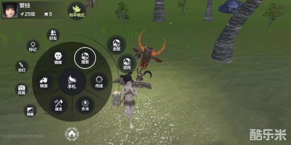 3、如果玩家想要使用搜索的话同样非常简单,首先我们需要通过传送到雪山地区,随后点击游戏屏幕转盘中的【搜索】选项,之后定向搜索冰块就能够追踪到附近存在的可开采冰了。
