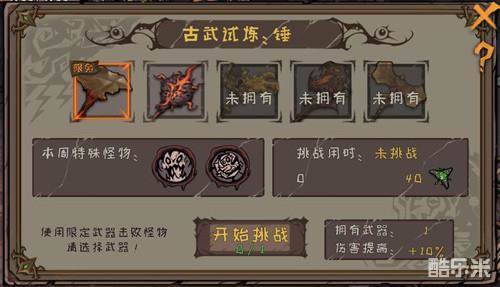 古武试炼中每天需要根据模式限定的武器进行挑战,除了在副本中获得掉落的【猫眼石】以外,胜利后还可以获得【摩刻石】,使用【摩刻石】可以通过“玛蒂尔达”在【虚无砂屋】中兑换“魔核宝箱”、“随机3级宝石”等奖励。