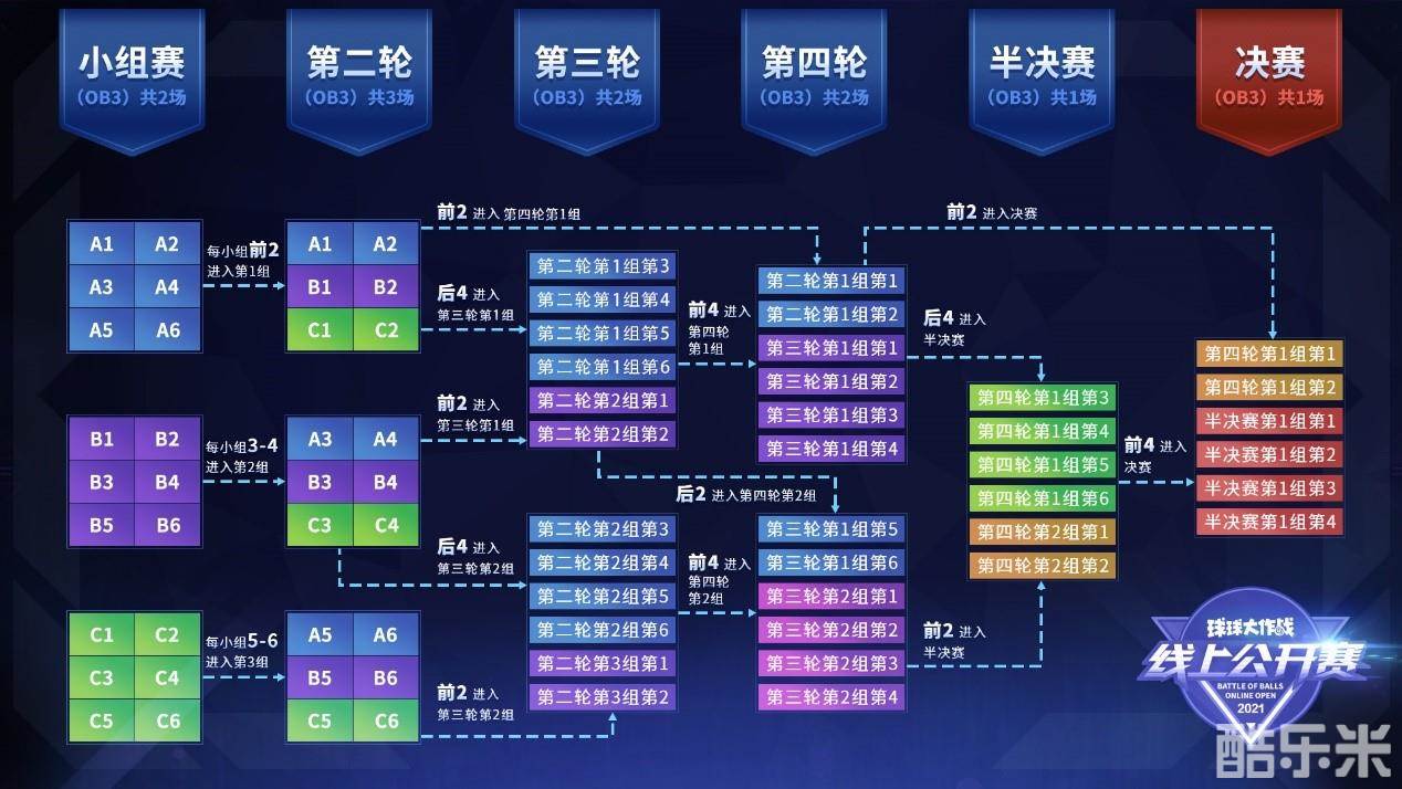在2021全新线上公开赛中,小组赛与总决赛将分别采用BO3与BO5赛制。而在1月28日~1月31日开启的小组赛阶段,将全程在斗鱼、虎牙、快手、抖音四大平台直播。据悉,届时比赛将采用6支队伍混战,游戏时长12分钟的标准比赛模式。当各队同时进入比赛后队伍名字会被随机的一种颜色代替。此外,为了保证比赛的公平性,游戏内的观战功能将会被屏蔽,整个比赛过程中,将禁用连续吐孢子功能,无特殊孢子光环皮肤残影等特效。
