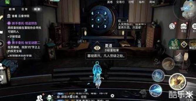首先我们进入冒险家协会,然后直接开启探查技能就能看到有发光的脚印,跟随脚印我们就能来到(1979,1992)夏道npc的旁边。