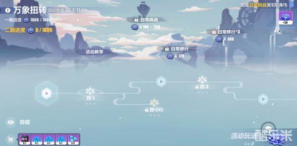 本次主线22章分为三个部分:「主线剧情关卡」、限时开放的「日常修行」和「日常挑战」活动关卡。